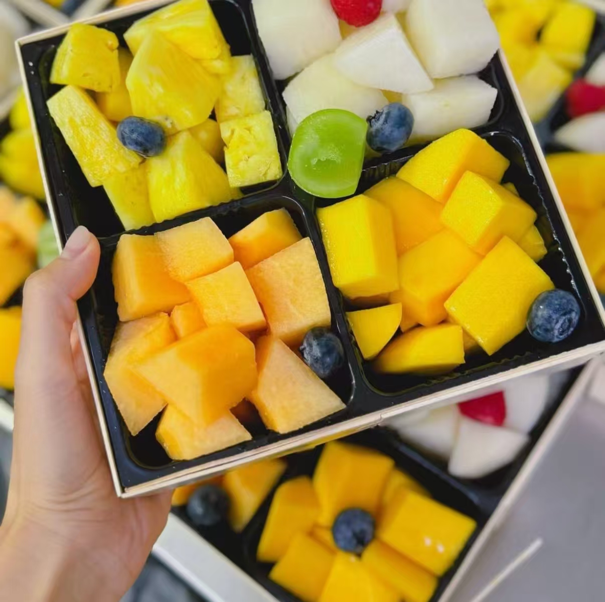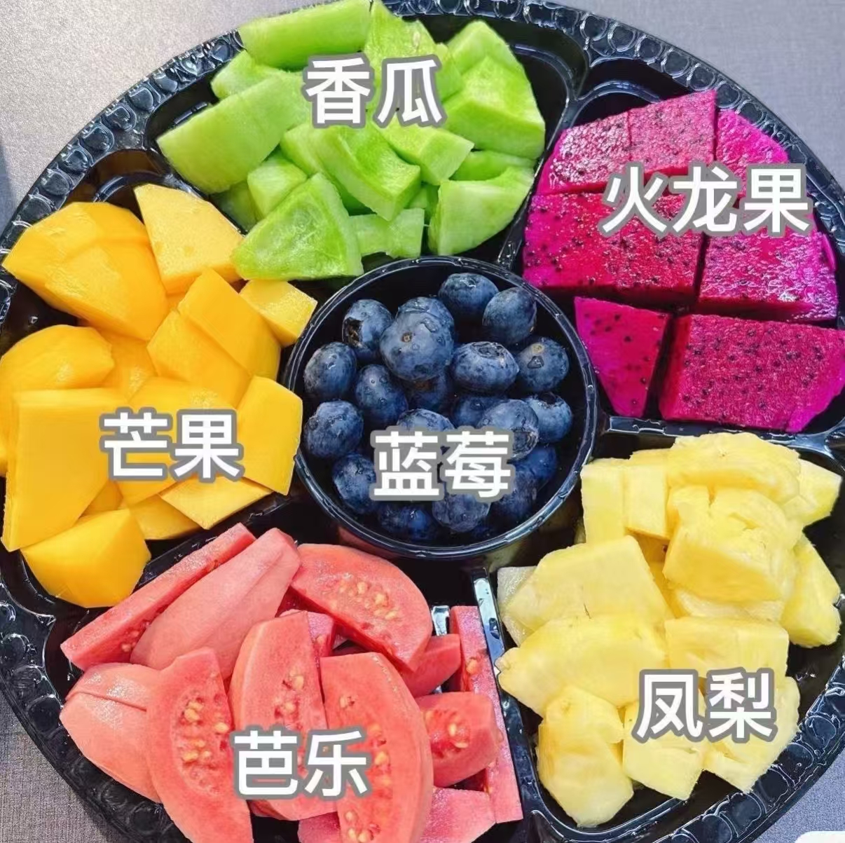 (六拼)芭乐+芒果+蓝莓+凤梨+心火龙果+甜瓜1000克