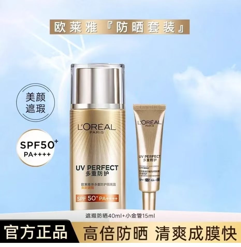 欧莱雅美颜遮瑕40ml+小金管15mlI防晒女小金管面部身体防晒霜海边户外军训防晒乳